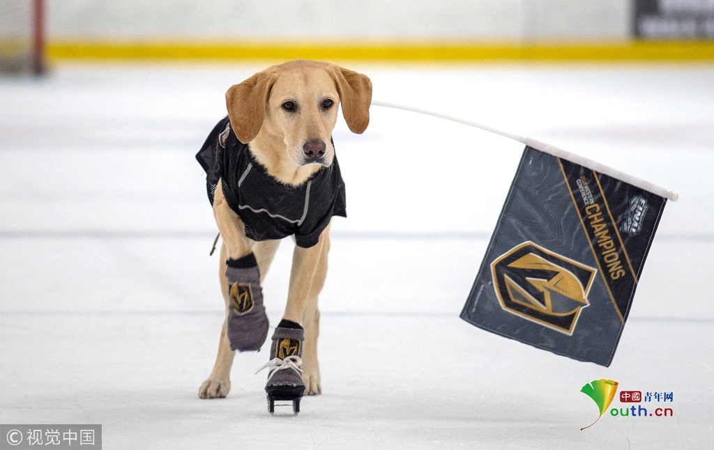 2018年9月26日訊。(具體拍攝時(shí)間不詳)這只可愛的拉布拉多犬本尼是世界上第一只會滑冰的狗。