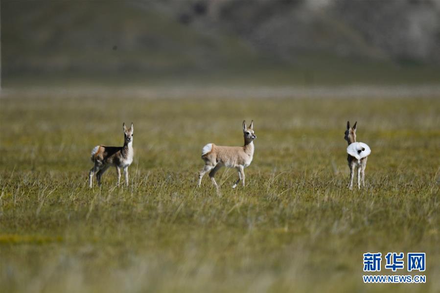 在西藏阿里地區(qū)境內(nèi)拍攝的國家二級保護(hù)動物藏原羚(9月8日攝)。 阿里地處西藏西部,平均海拔4500米以上,面積30多萬平方公里,羌塘國家級自然保護(hù)區(qū)幾乎涵蓋整個(gè)阿里地區(qū),是眾多野生動物生活的樂園。 新華社記者 普布扎西 攝