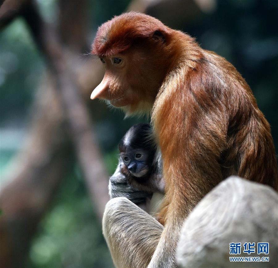 當日,廣州長隆野生動物世界的珍稀大鼻猴寶寶亮相。它于9月2日在長隆出生。2017年9月,長隆從印度尼西亞成功引進國內(nèi)首批大鼻猴。 新華社記者 黃國保 攝