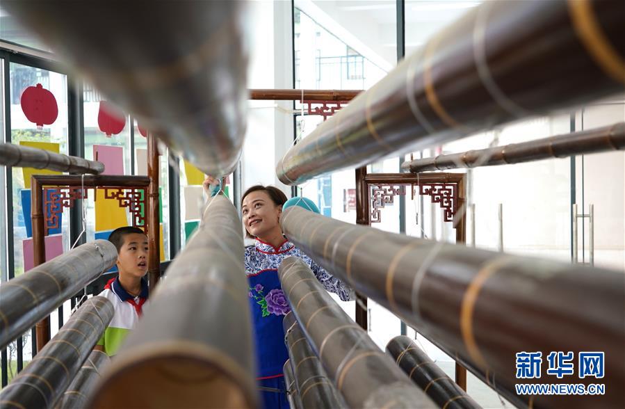 10月8日,崇義縣竹樂樂團的演員在教學生演奏竹板琴。 近年來,江西省崇義縣思源實驗學校定期開設竹樂課,邀請崇義縣竹樂樂團的演員教授學生演奏竹排琴、竹板琴等竹樂樂器,激發(fā)學生了解傳統(tǒng)文化的熱情。 新華社記者胡晨歡攝