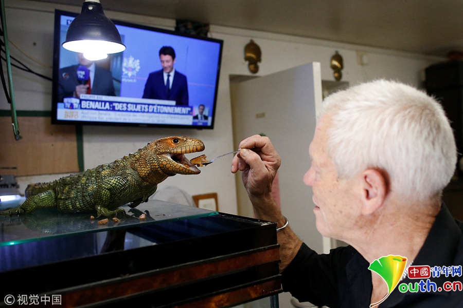 中國(guó)青年網(wǎng)北京9月21日電 當(dāng)?shù)貢r(shí)間2018年9月19日,法國(guó)67歲的法國(guó)男子Philippe Gillet與400多只爬行動(dòng)物生活在一起,有鱷魚、蜥蜴、眼鏡蛇等等。