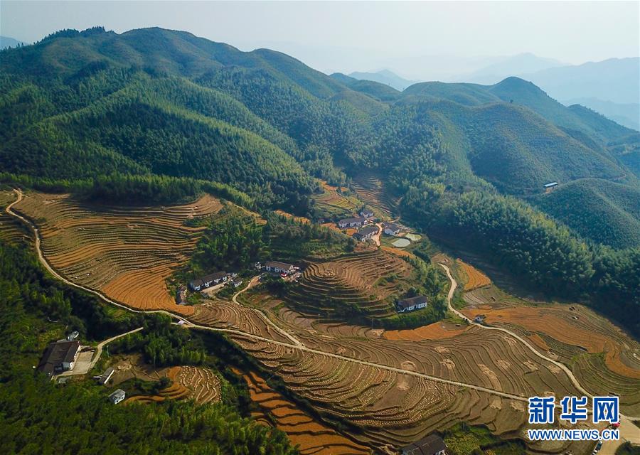 這是上堡鄉(xiāng)的高山梯田(10月9日無(wú)人機(jī)拍攝)。 新華社記者 胡晨歡 攝