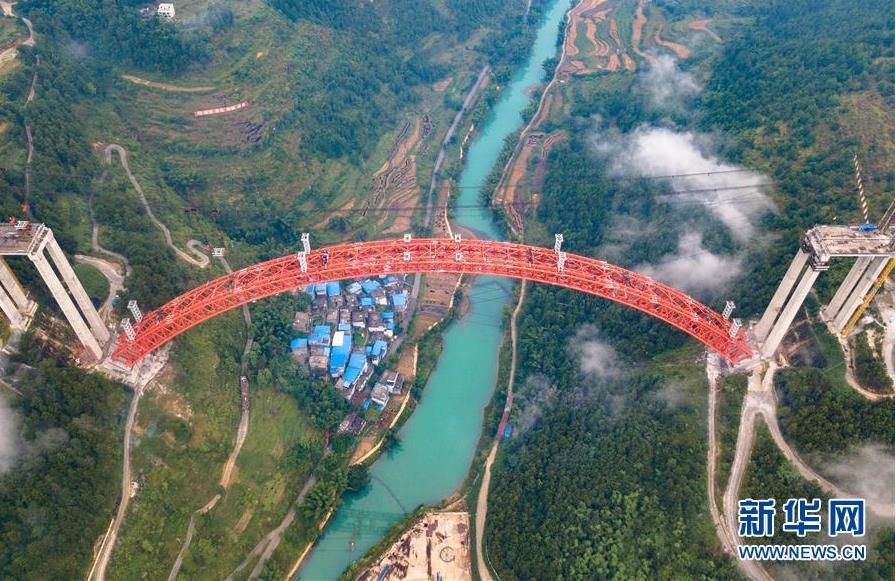 9月12日使用無人機拍攝的大小井特大橋。 目前,橫跨在貴州省羅甸縣大井河上的大小井特大橋建設進入沖刺階段。大小井特大橋全長1.5公里,主跨450米,是世界最大跨徑上承式鋼管混凝土拱橋。據(jù)了解,該橋是平塘至羅甸高速公路關鍵性工程,對打通貴州“斷頭路”,助推滇黔桂石漠化片區(qū)脫貧攻堅具有重要意義。 新華社記者劉續(xù)攝
