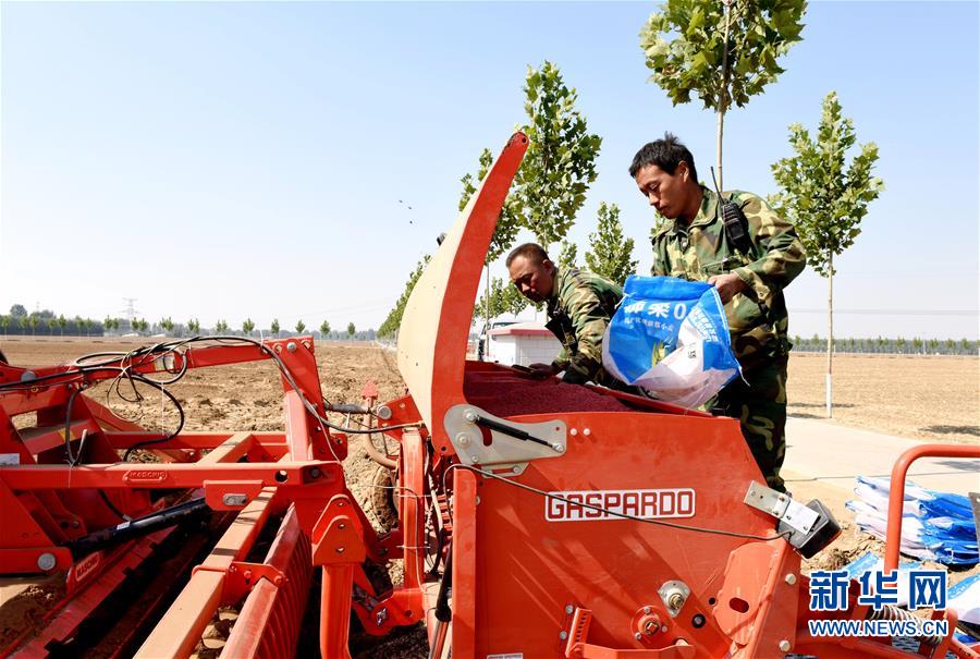 10月14日,河北省南和縣閆里鄉(xiāng)閆里村農(nóng)民將小麥種子倒入播種機(jī)。  新華社記者 朱旭東 攝
