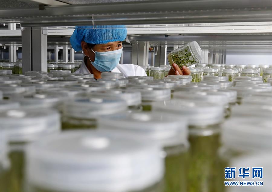 9月23日,張北縣小二臺鎮(zhèn)一家馬鈴薯育種中心的技術(shù)員在培育室查看薯苗長勢。 近年來,地處壩上地區(qū)的河北省張北縣因地制宜,積極推進(jìn)馬鈴薯產(chǎn)業(yè)化發(fā)展,形成了馬鈴薯繁種育種、商品薯種植、倉儲、加工為一體的產(chǎn)業(yè)鏈,帶動農(nóng)民增收致富。 新華社記者楊世堯攝