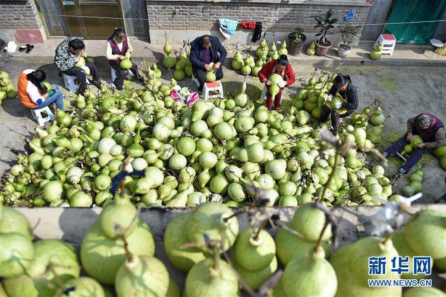 9月27日,山西省安澤縣和川鎮(zhèn)孔旺村的村民將葫蘆去皮。近日,山西省安澤縣和川鎮(zhèn)孔旺村種植的葫蘆喜獲豐收,村民們忙著將摘下的葫蘆去皮晾干??淄逵?016年成立葫蘆種植合作社,種植、采摘、加工等環(huán)節(jié)全部由貧困戶負(fù)責(zé),為貧困戶拓寬增收渠道。新華社記者 曹陽 攝