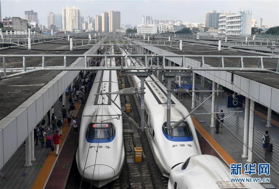 在廣西南寧站,旅客進(jìn)入站臺準(zhǔn)備乘坐動車出行(9月4日攝)。 廣西壯族自治區(qū)成立60年來,鐵路建設(shè)發(fā)生翻天覆地的變化。來自中國鐵路南寧局集團(tuán)有限公司的數(shù)據(jù)顯示,1958年廣西鐵路總里程為1346.3公里,如今廣西鐵路總里程達(dá)5191公里。廣西與周邊相鄰省份間實現(xiàn)動車“公交化”開行。此外,北部灣港—重慶班列、東盟海產(chǎn)品冷鏈班列、“百色一號”果蔬專列等的開通和運(yùn)營,強(qiáng)化了鐵路供給的針對性和有效性。鐵路成為助推廣西經(jīng)濟(jì)社會快速發(fā)展的“大動脈”。 新華社記者陸波岸攝