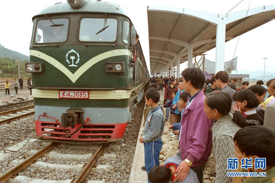 1998年12月6日,首列福州-南平-武夷山旅游客運(yùn)列車緩緩駛進(jìn)武夷山站。 新華社記者張國俊 攝