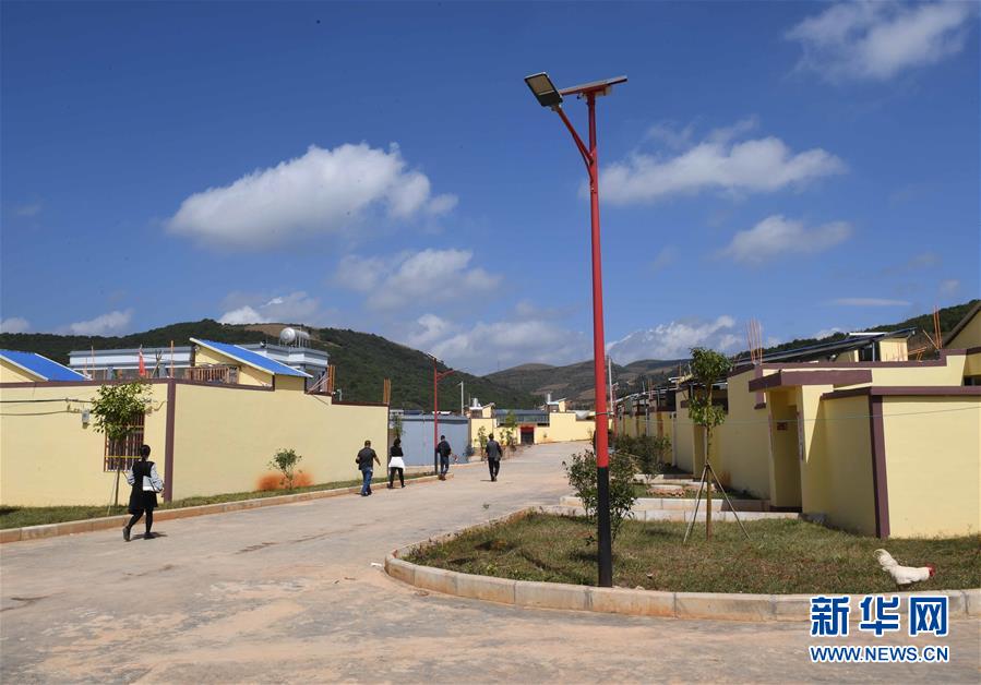 10月16日,人們行走在硯山縣小補佐村的道路上。 云南省文山壯族苗族自治州硯山縣稼依鎮(zhèn)小補佐村有55戶200多名壯族群眾曾經居住在大山深處。2017年10月,在政府的幫扶下,小補佐村易地扶貧建設新村,村民全部搬遷入住新居。 新華社記者 楊宗友 攝
