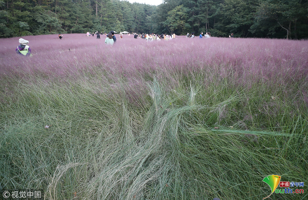 韓國(guó)蔚山,近日,蔚山公園大片粉黛亂子草盛開(kāi),但部分花海遭游客隨意踩踏。公園并沒(méi)有修復(fù)遭破壞區(qū)域,而是用繩索圍起并掛上批判性告示,呼吁游客腳下留情。圖片作者:Yonhap News Agency