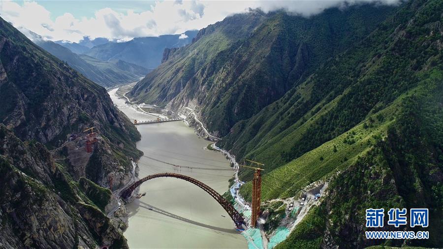 9月28日拍攝的川藏鐵路拉林段重點(diǎn)標(biāo)志性工程藏木特大橋。 當(dāng)日,隨著最后一節(jié)鋼管拱的對位和鎖定完畢,川藏鐵路拉林段藏木特大橋成功合龍,標(biāo)志著大橋主體結(jié)構(gòu)施工取得了關(guān)鍵性勝利。藏木特大橋由中國中鐵廣州局集團(tuán)承建,拱高112米,橋橫跨雅魯藏布江峽谷,水深66米。 新華社記者普布扎西攝