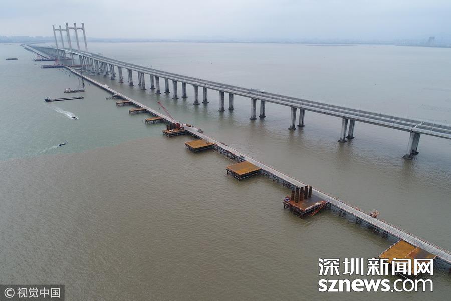 建設(shè)中的福廈高鐵泉州灣跨海大橋。