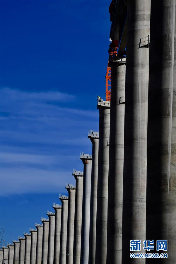 中鐵十一局的工人在川藏鐵路拉林段昌果特大橋進行鋪軌作業(yè)(10月16日攝)。 近日,川藏鐵路拉薩至林芝段昌果特大橋開始鋪設(shè)行軌排、架設(shè)梁片,標(biāo)志著川藏鐵路拉林段正式進入鋪軌階段。 新華社記者 普布扎西 攝