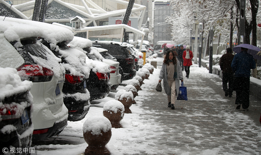 新疆烏魯木齊迎暴雪 市區(qū)道路大樹遭“折腰”