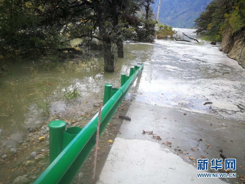 通往西藏林芝米林縣加拉村的道路被水淹沒(méi)(10月18日攝)。  新華社記者 覺(jué)果攝