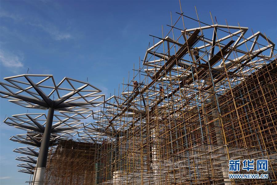 10月18日拍攝的建設(shè)中的北京世園會(huì)國(guó)際館。新華社記者 鞠煥宗 攝