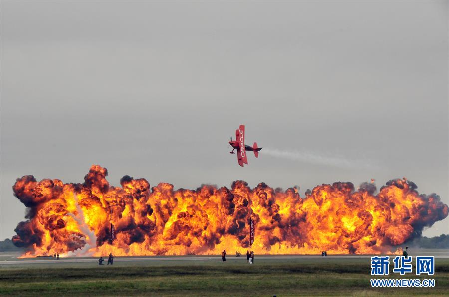 10月20日,在美國休斯敦,特技飛行員肖恩·塔克駕駛飛機(jī)進(jìn)行飛行表演。 新華社記者劉立偉攝