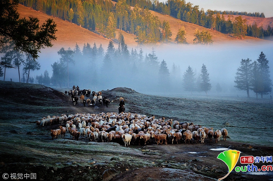 中國(guó)青年網(wǎng)北京9月13日電 2018年9月11日,新疆阿勒泰美麗的托勒海特夏牧場(chǎng)天氣逐漸變冷,哈薩克族牧民整理好行裹,抱著孩子,趕著牛羊,浩浩蕩蕩向秋牧場(chǎng)遷徙。