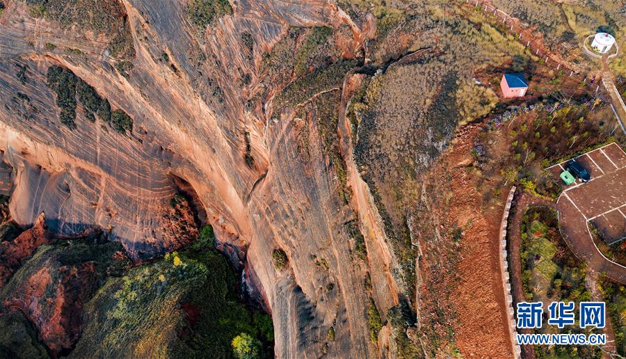 10月21日無人機(jī)拍攝的王家灣丹霞地貌。 新華社記者陶明攝