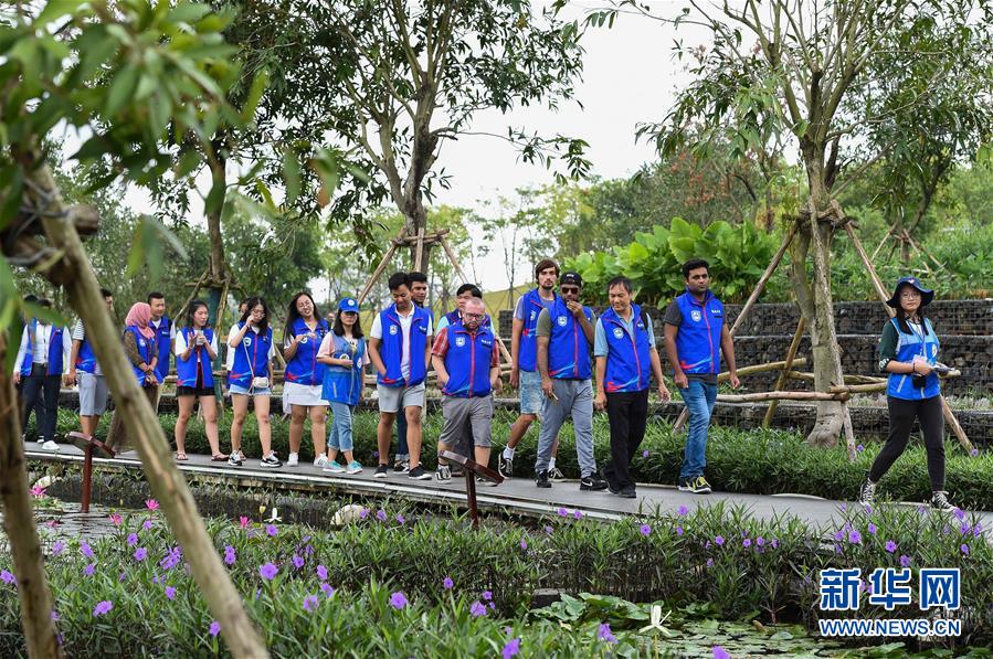 在海口市美舍河鳳翔濕地公園,參加濕地保護志愿服務(wù)講解員培訓(xùn)的留學(xué)生志愿者一邊參觀一邊聽中國志愿者講解(10月21日攝)。 ??谑续P翔濕地公園內(nèi)流水潺潺,綠草如茵。很難想象,這個市民游客休閑散步的好去處、具有強大污水凈化功能的濕地公園,兩年前還是臭氣熏天、人們避之不及的垃圾堆填場。 把生態(tài)文明建設(shè)放到更加突出的位置,近兩年來??谑幸詽竦爻鞘薪ㄔO(shè)為突破口,不斷創(chuàng)新城市生態(tài)治理,著力改善生態(tài)民生,在生態(tài)文明建設(shè)上闖關(guān)探路。 新華社記者 楊冠宇 攝
