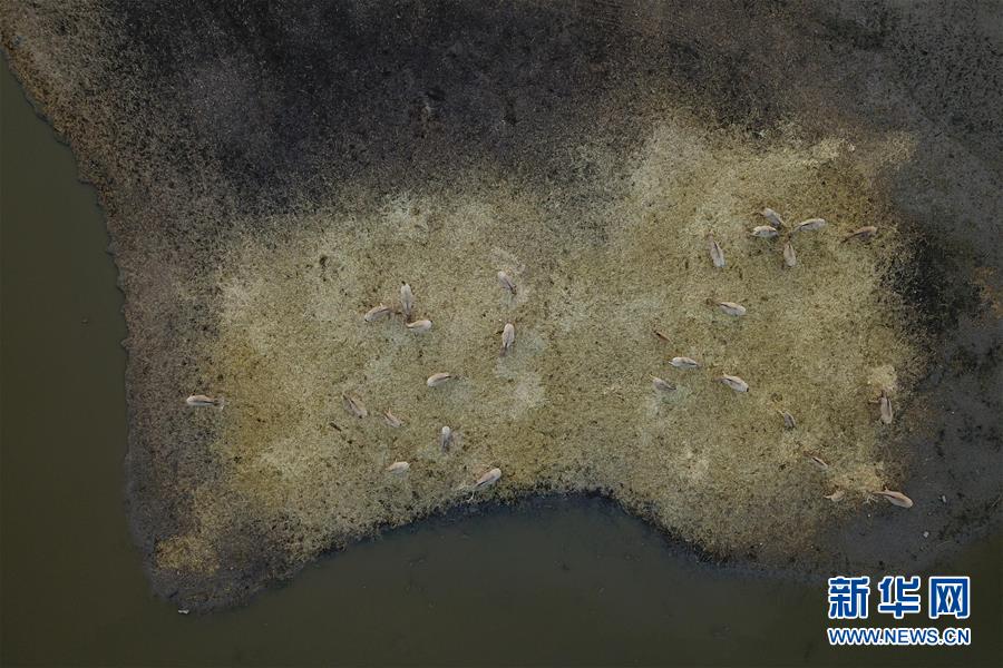 10月24日,生活在杭州灣國家濕地公園水禽棲息區(qū)的麋鹿在覓食(無人機(jī)拍攝)。 時值深秋,位于浙江寧波的杭州灣國家濕地公園在落日余暉下呈現(xiàn)出一幅美麗的畫卷。 新華社記者 黃宗治 攝