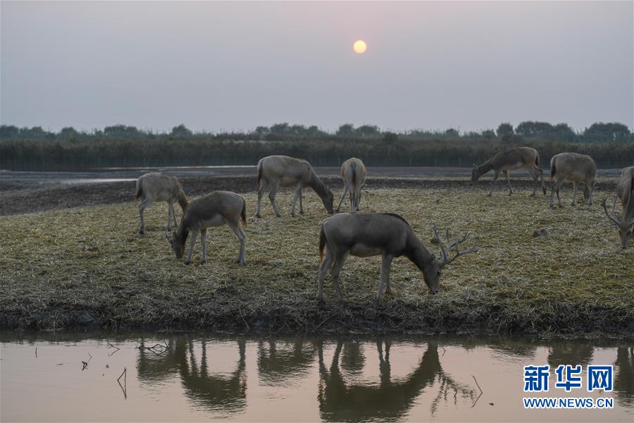 10月24日,生活在杭州灣國(guó)家濕地公園水禽棲息區(qū)的麋鹿在覓食。 時(shí)值深秋,位于浙江寧波的杭州灣國(guó)家濕地公園在落日余暉下呈現(xiàn)出一幅美麗的畫卷。 新華社記者 黃宗治 攝