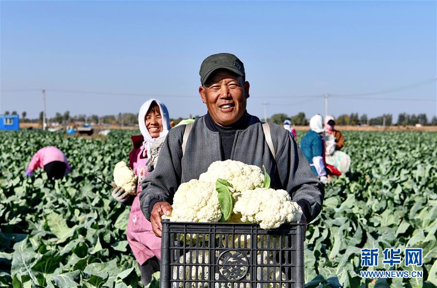 10月29日,樂亭縣馬頭營鎮(zhèn)馬頭營村的農(nóng)民在收獲菜花。