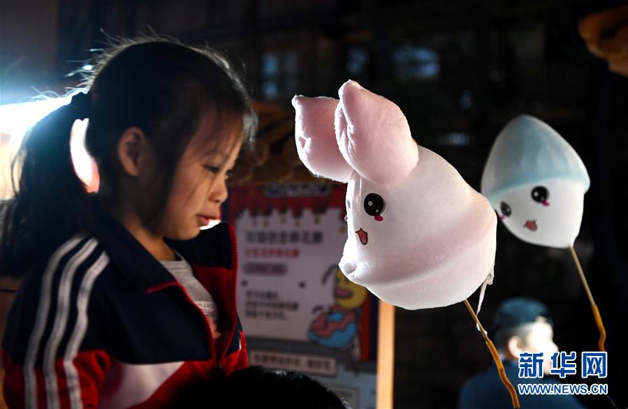 10月29日,在首屆天下碼商大會碼商集市上,一名小女孩在觀看創(chuàng)意棉花糖制作。 10月28日至30日,由福州市政府聯(lián)合支付寶主辦的首屆天下碼商大會在福建福州舉行。 新華社記者 姜克紅 攝
