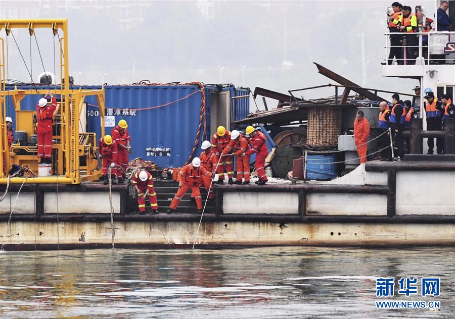 重慶萬州墜江公交車打撈深潛設(shè)備到位 潛水員正下潛勘測