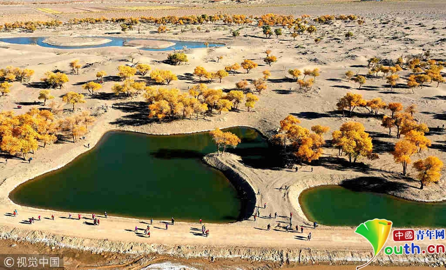 中國青年網(wǎng)北京10月9日電 2018年10月7日至8日,內(nèi)蒙古自治區(qū)阿拉善盟額濟(jì)納旗,地處巴丹吉林沙漠。額濟(jì)納河兩岸壯觀的胡楊林堪稱大漠的一顆綠色明珠,每年深秋時節(jié)的第一場秋霜過后,大片的胡楊樹葉由綠變黃,一眼望去,陽光下金色的樹葉襯著湛藍(lán)的天空于風(fēng)中婆娑起舞,鮮明的影調(diào),亮麗的色彩,令人流連忘返。