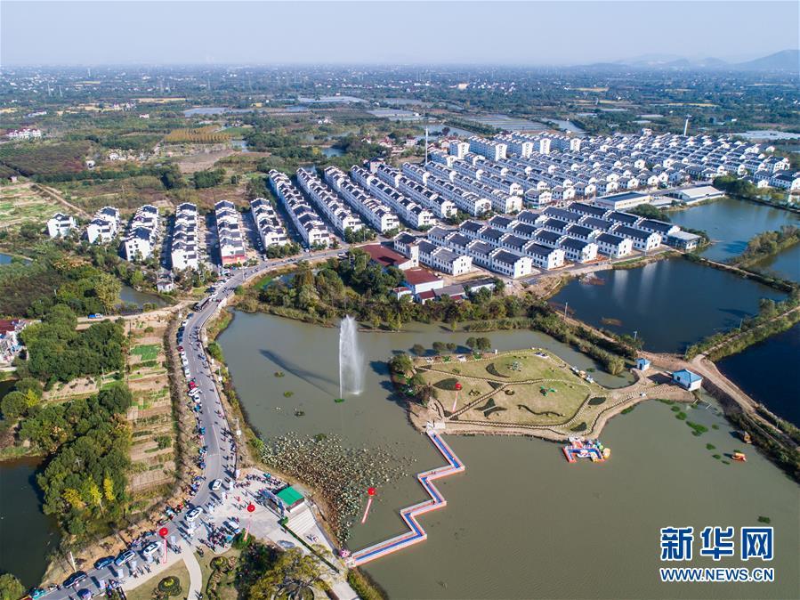 這是2018年10月27日航拍的北湯村生態(tài)園和整齊的農(nóng)民新居。新華社記者 徐昱 攝