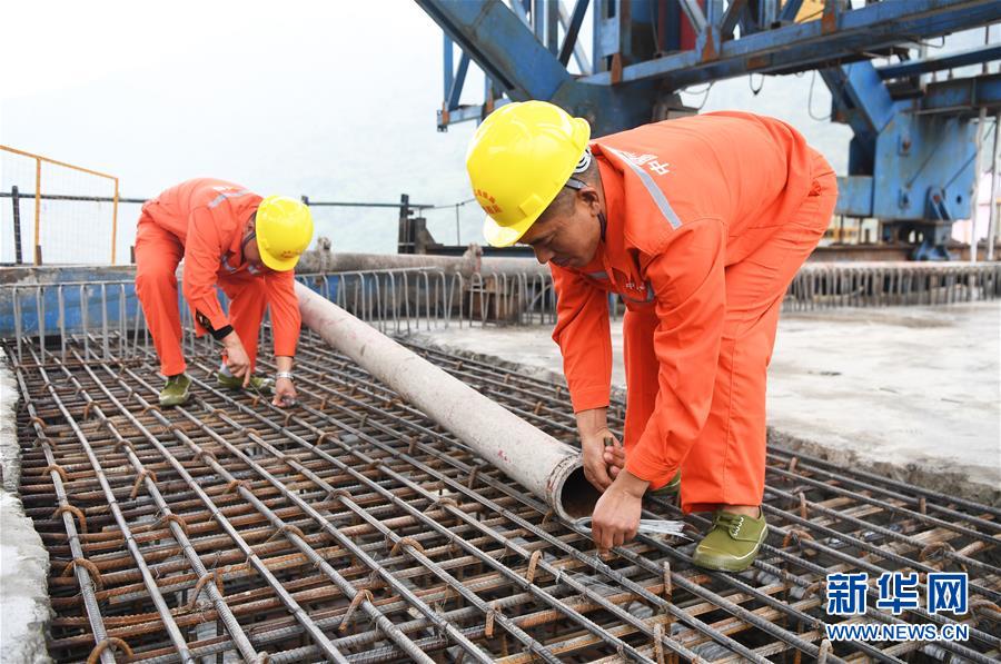 10月23日,在重慶涪陵,施工人員在渝懷鐵路涪秀二線重點(diǎn)工程——烏江右線大橋主跨合龍現(xiàn)場(chǎng)作業(yè)。 當(dāng)日,由中鐵四局承建的渝懷鐵路涪秀二線重點(diǎn)工程——烏江右線大橋主跨成功合龍,標(biāo)志著大橋主體工程全部順利結(jié)束。烏江右線大橋項(xiàng)目全程460.1米,主跨192米,跨越烏江和319國(guó)道。在兩年多的建設(shè)過(guò)程中,施工人員攻克了“不等高墩”“不對(duì)稱(chēng)邊跨”“邊跨入隧”等多個(gè)技術(shù)難題。 新華社記者王全超攝