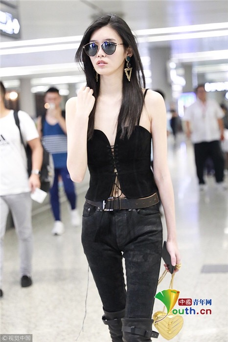 2018年7月25日,上海,奚夢(mèng)瑤現(xiàn)身機(jī)場,她穿吊帶馬甲配過膝長靴,頻撩發(fā)似女特工。
