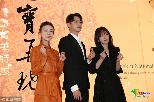 10月31日,臺北,《延禧攻略》主要演員秦嵐、吳謹(jǐn)言、許凱參觀臺北故宮。吳謹(jǐn)言梳高馬尾辮,元氣滿滿比心超甜美。秦嵐穿黑色長裙氣質(zhì)非凡,親切揮手顯優(yōu)雅,可以說是“富察皇后”本人了,與吳謹(jǐn)言牽手秀友誼惹人羨慕。