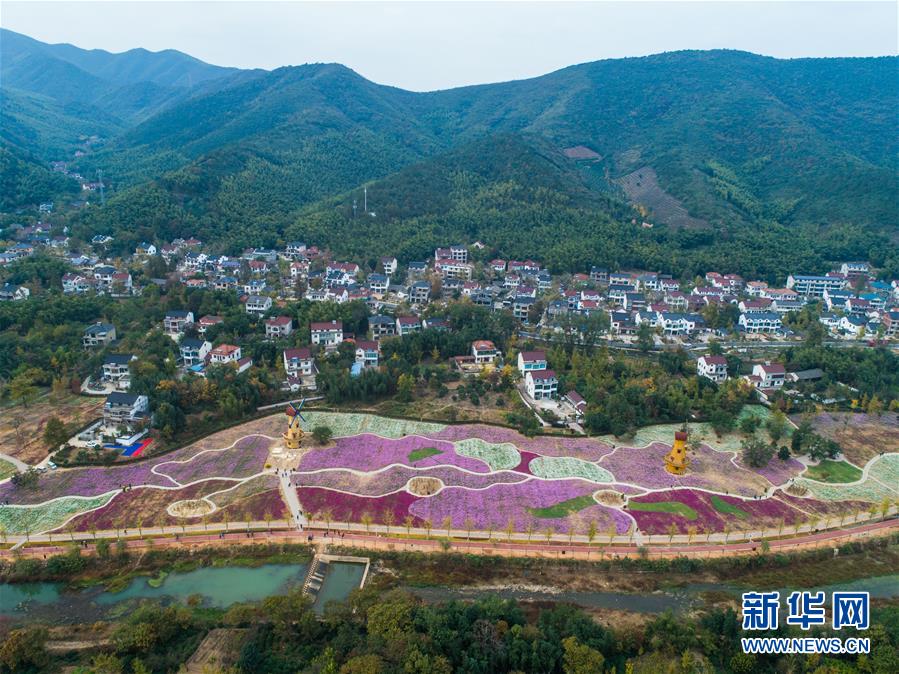 11月2日,空中俯瞰小浦鎮(zhèn)的“五彩花?!保嗖实幕êEc金黃的銀杏林構(gòu)成了一幅美麗的秋季風(fēng)景(無(wú)人機(jī)拍攝)。 新華社記者 徐昱 攝