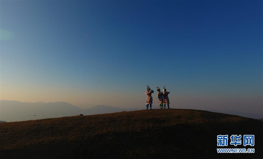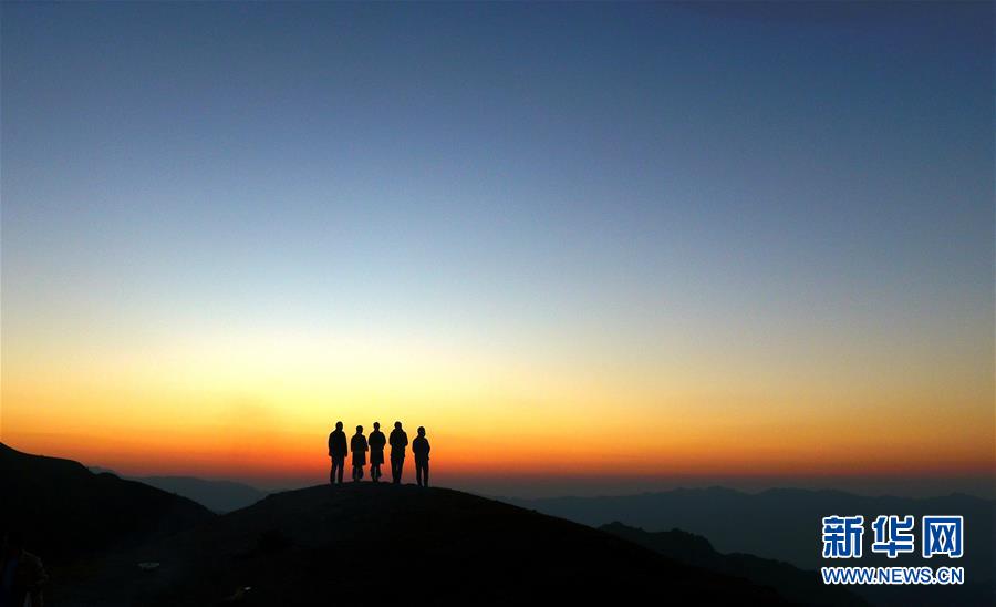 11月2日,游客在摩天嶺草場欣賞夕陽景色(無人機(jī)拍攝)。金秋時節(jié),廣西融水苗族自治縣桿洞鄉(xiāng)堯告村的摩天嶺草場天高云淡,景色迷人。新華社記者周華攝