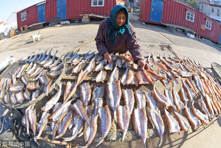 訊 金秋時節(jié),江蘇連云港市沿海秋捕迎來豐收,漁民們將捕獲的鯧魚、鰻魚、小黃魚、烏賊等經過腌制、晾曬加工成魚干,海島處處呈現(xiàn)出一派豐收景象。