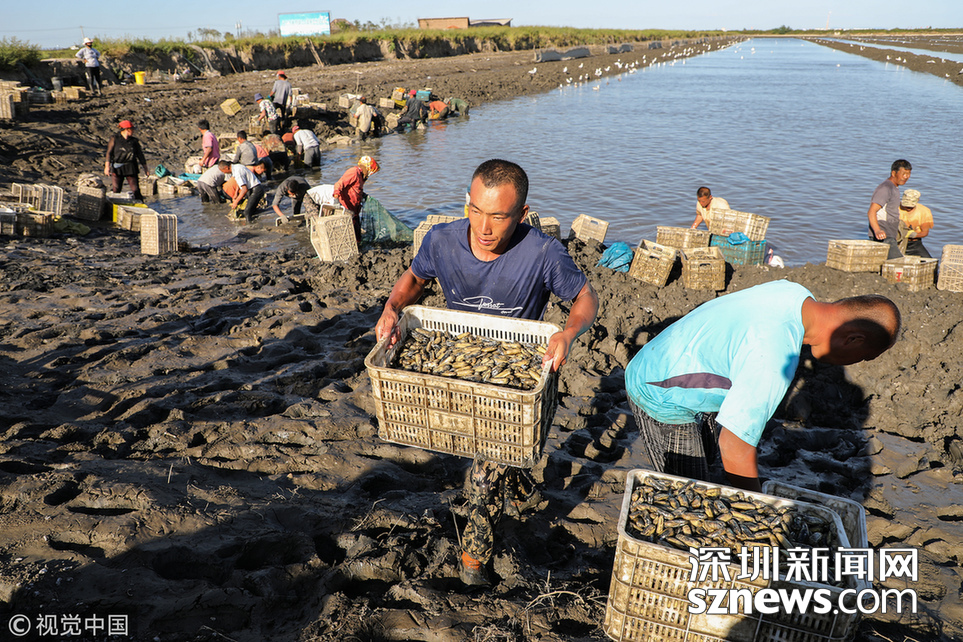 緊挨著黃海的大片養(yǎng)殖區(qū),因?yàn)橐粭l濱海大道,被自然劃成南北兩個部分。挖蟶人從四面八方趕來,或集體包車、或自駕摩托。這些機(jī)動車密密地停靠在濱海大道一側(cè),綿延數(shù)公里。