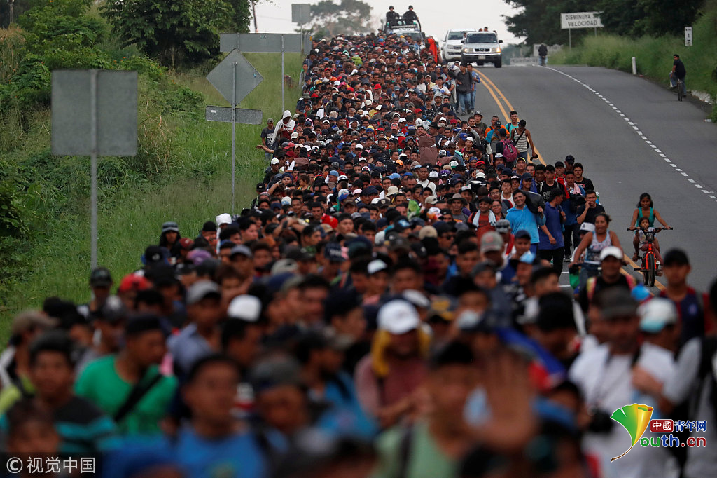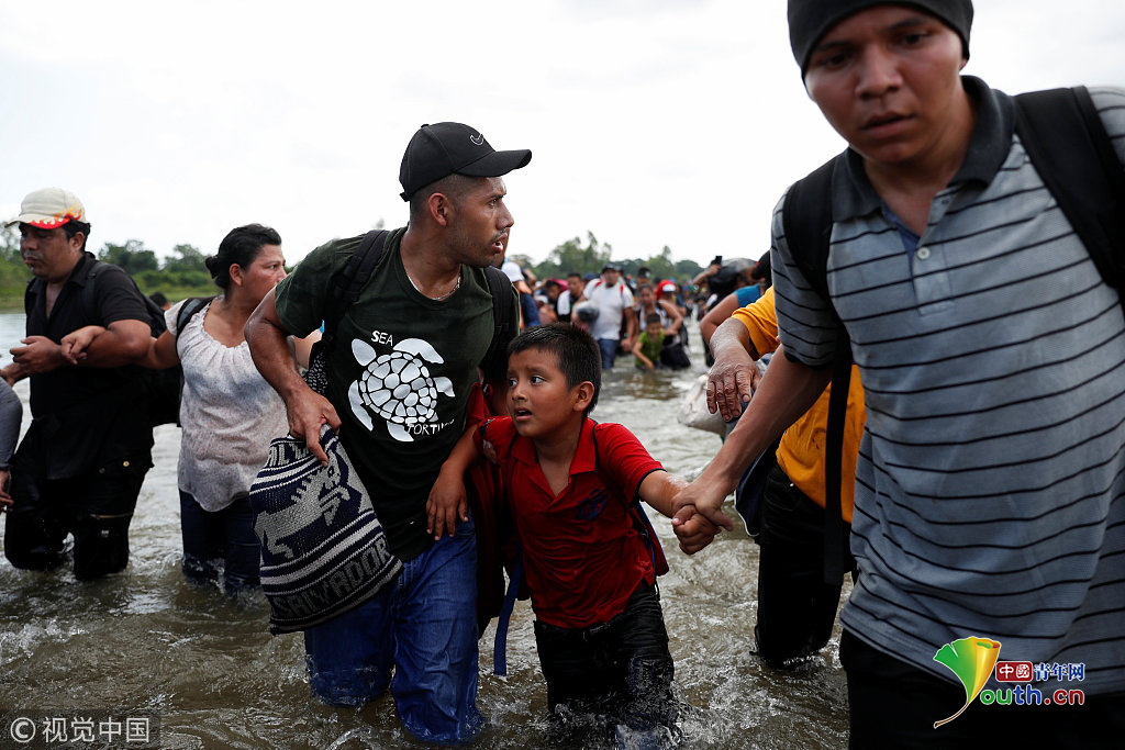 當(dāng)?shù)貢r間2018年11月2日,墨西哥與危地馬拉邊界,中美洲移民繼續(xù)向美國挺進(jìn)。圖片作者:UESLEI MARCELINO