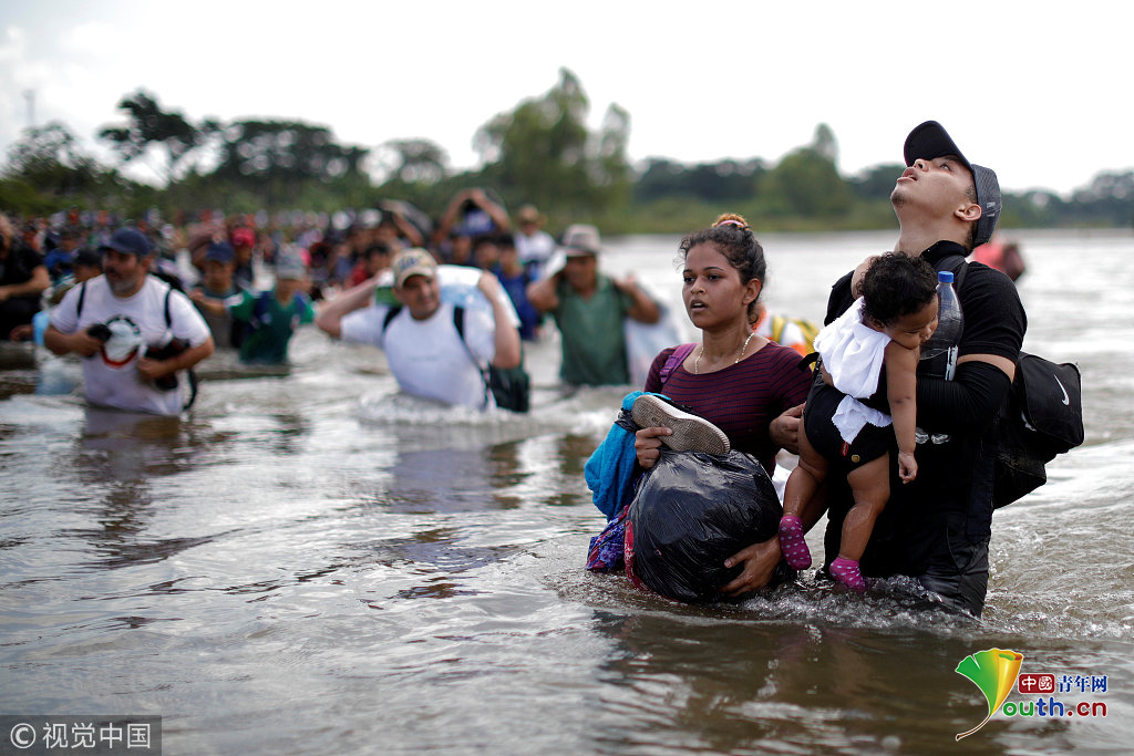 當(dāng)?shù)貢r間2018年11月2日,墨西哥與危地馬拉邊界,中美洲移民繼續(xù)向美國挺進(jìn)。圖片作者:CARLOS GARCIA RAWLINS