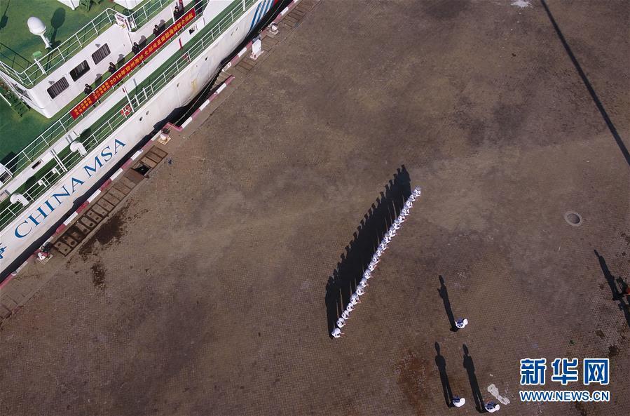 11月3日,海事執(zhí)法人員登上“海巡21”輪(無人機拍攝)。 當(dāng)日,隨著“海巡21”輪緩緩駛離??诤J卤O(jiān)管基地碼頭,由瓊桂粵海事部門共同開展的瓊州海峽、北部灣及環(huán)海南島水域跨轄區(qū)聯(lián)合巡航執(zhí)法活動揭開序幕。 新華社記者楊冠宇攝