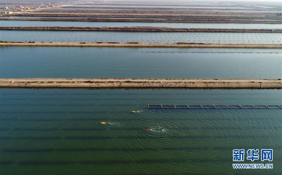 10月22日,樂亭縣姜各莊鎮(zhèn)二節(jié)村海參養(yǎng)殖基地的工人在捕撈海參(無人機(jī)拍攝)。 時下,正值渤海灣地區(qū)海參收獲時節(jié),河北省樂亭縣的海參養(yǎng)殖戶忙著捕撈海參,供應(yīng)各地市場。據(jù)介紹,該縣海域水質(zhì)優(yōu)良、氣候適宜,是海參養(yǎng)殖的理想場地,目前發(fā)展池塘造礁養(yǎng)殖海參面積6萬畝,年產(chǎn)鮮活海參6000多噸,年產(chǎn)值2億多元。 新華社記者 楊世堯 攝