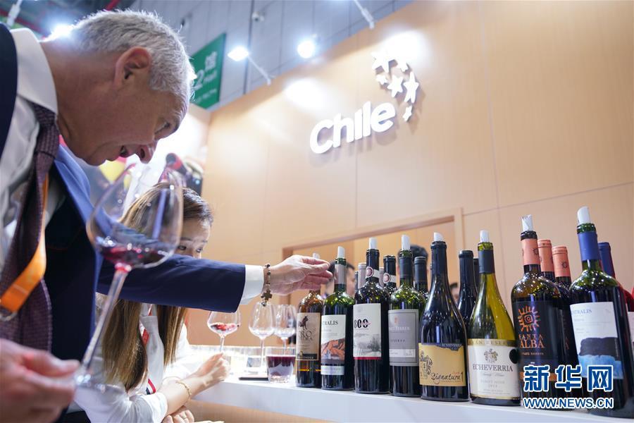 11月5日,一位男士了解智利葡萄酒。 當(dāng)日,首屆中國(guó)國(guó)際進(jìn)口博覽會(huì)在國(guó)家會(huì)展中心(上海)開幕。 新華社記者 孟鼎博 攝