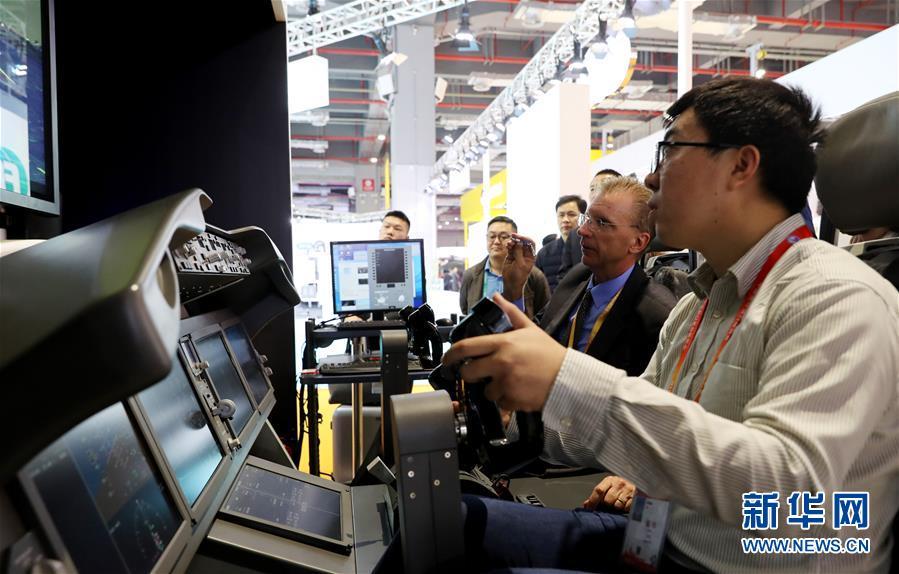 11月5日,一名參觀者在美國(guó)波音公司展臺(tái)體驗(yàn)787機(jī)型的模擬駕駛艙。 新華社記者 方喆 攝