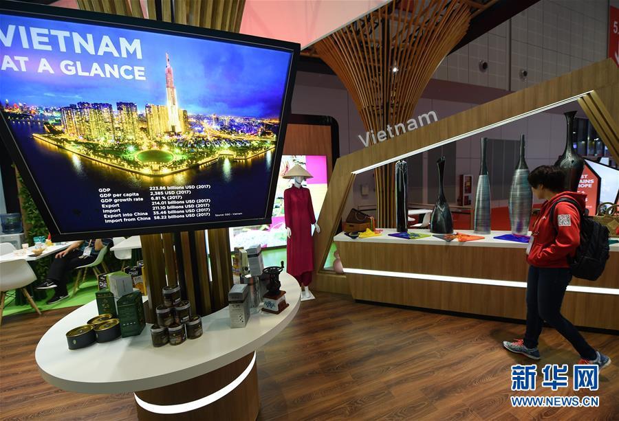 11月5日,一名媒體記者在越南展館內(nèi)參觀。 新華社記者 韓瑜慶 攝