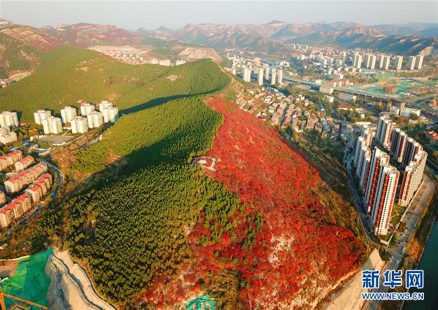 深秋時(shí)節(jié),山東濟(jì)南楔子山山脊兩邊種植的植被形成“一山雙色”景觀(guān),令人稱(chēng)奇。