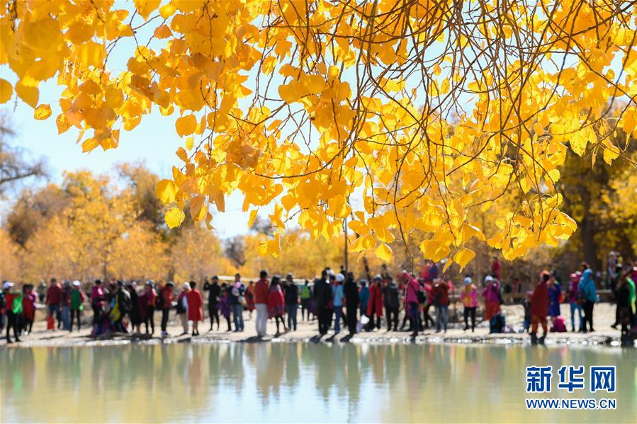 10月10日,在內(nèi)蒙古自治區(qū)額濟(jì)納旗,游客在觀(guān)賞胡楊林。 金秋時(shí)節(jié),內(nèi)蒙古自治區(qū)額濟(jì)納旗胡楊林如同披上金裝,成為大漠中的一抹亮色,吸引眾多中外游客前來(lái)觀(guān)賞游玩。 新華社記者劉磊攝
