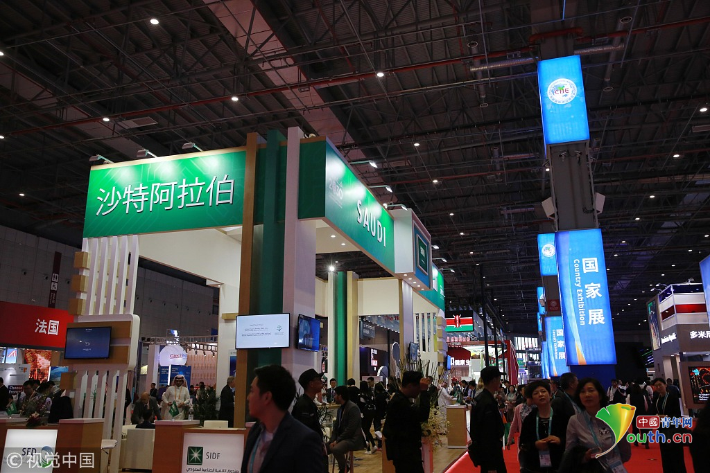2018年11月6日,上海,首屆中國國際進口博覽會國家展上,共有82個國家、3個國際組織設立了71個展臺。沙特阿拉伯館。視覺中國