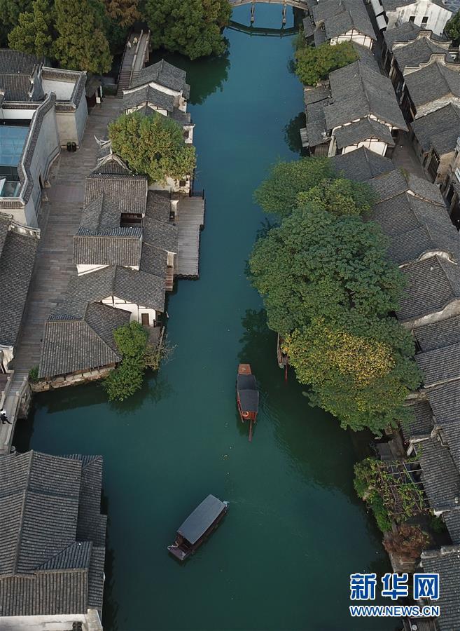 這是10月31日無人機拍攝的烏鎮(zhèn)西柵景區(qū)。 新華社記者黃宗治攝