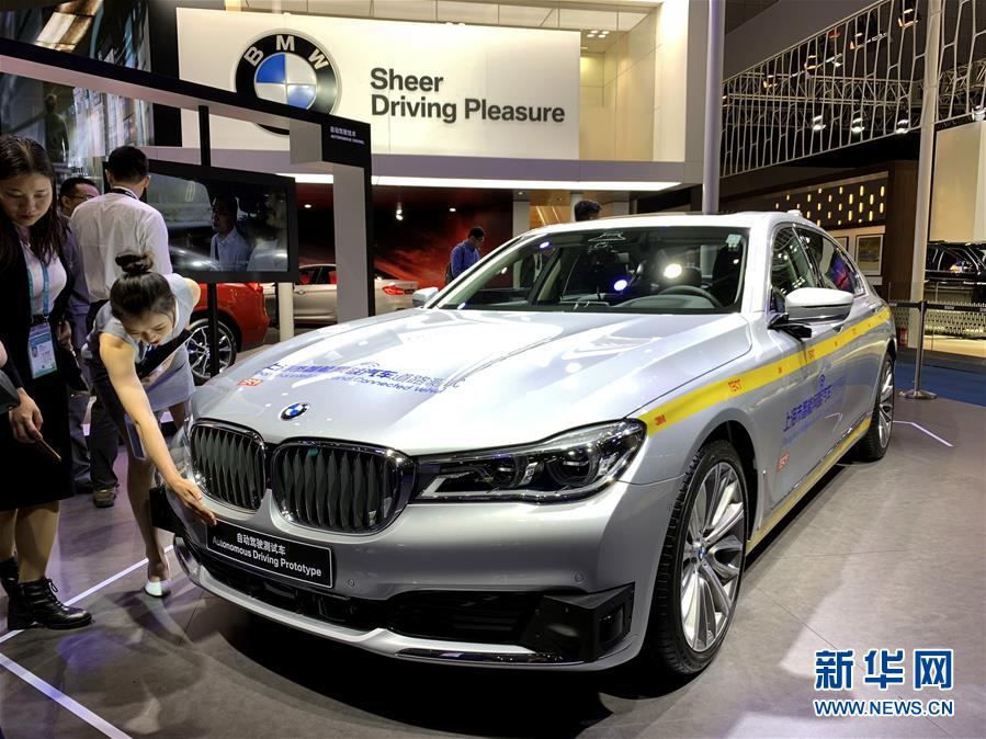 這是11月7日在汽車展區(qū)拍攝的配備L4級自動駕駛技術(shù)的寶馬7系測試車。新華社記者 牛曉雷 攝